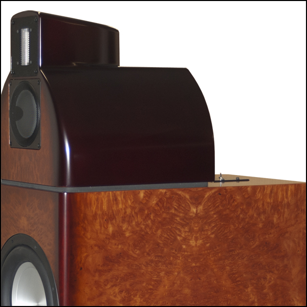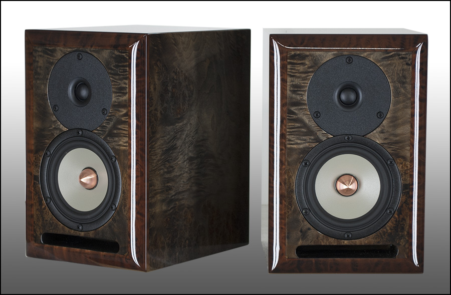 Burled walnut in hand-rubbed, high-gloss finish